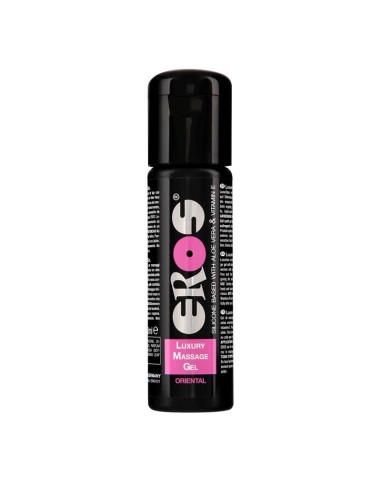 El gel de masaje Oriental ir puro lujo. Cuenta con esencias de mandarinas, madeja de sándalo, vainilla y coco. Cuenta con una mezcla de siliconas desarrollada para mujeres. Contiene aloe vera y vitamina E, perfecto para pieles sensibles.
