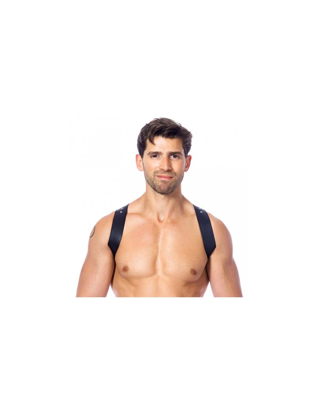 Arnés cruzado de cuero ajustable. Cuenta con 4 hebillas para que lo puedas ajustar a la medida en la que más cómodo estés.