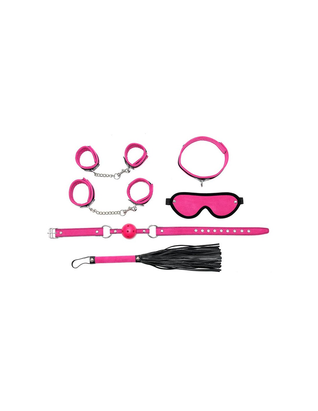 ¿Estás preparando una noche de pasión? Lo mejor para conseguirlo son unos buenos juguetes. Con este completo kit lo tendrás todo. Cuenta con unas esposas y un collar para una sumisión extrema. Para que agudizar los sentidos una mordaza de bola y un antifaz. Y para un toque de tensión un buen flogger.